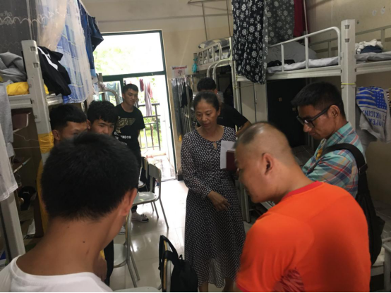 每到一个宿舍,张老师都亲切地与同学们交谈,详细询问大家对学校的感受和对未来的畅想。“各位同学都是来自哪里的?”“你们对学校的饮食能适应吗?”“对学校有什么意见和建议?”“你们对大学生活有什么规划?”一句句真诚暖心的话语感动着充满梦想和喜悦的新生。当了解到一个宿舍几位同学各来自不同地方时,学校领导鼓励他们珍惜缘分,加强团结,互相帮助,共同进步,加强宿舍文化建设,给大学生活留下美好的记忆,留下永久的友情。