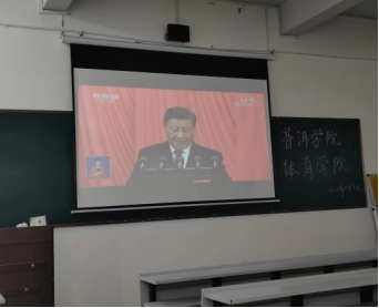 在做好疫情防控的情况下,集中收看的同学们提前十五分钟,在班长的带领下有组织、有秩序进入观看现场,隔空就坐。习近平总书记代表第十九届中央委员会向大会作了题为《高举中国特色社会主义伟大旗帜为全面建设社会主义现代化国家而团结奋斗》的报告。报告中指出,青年强,则国家强。当代中国青年生逢其时,施展才干的舞台无比广阔,实现梦想的前景无比光明。收看过程中,大家全神贯注地聆听,边看边做记录。